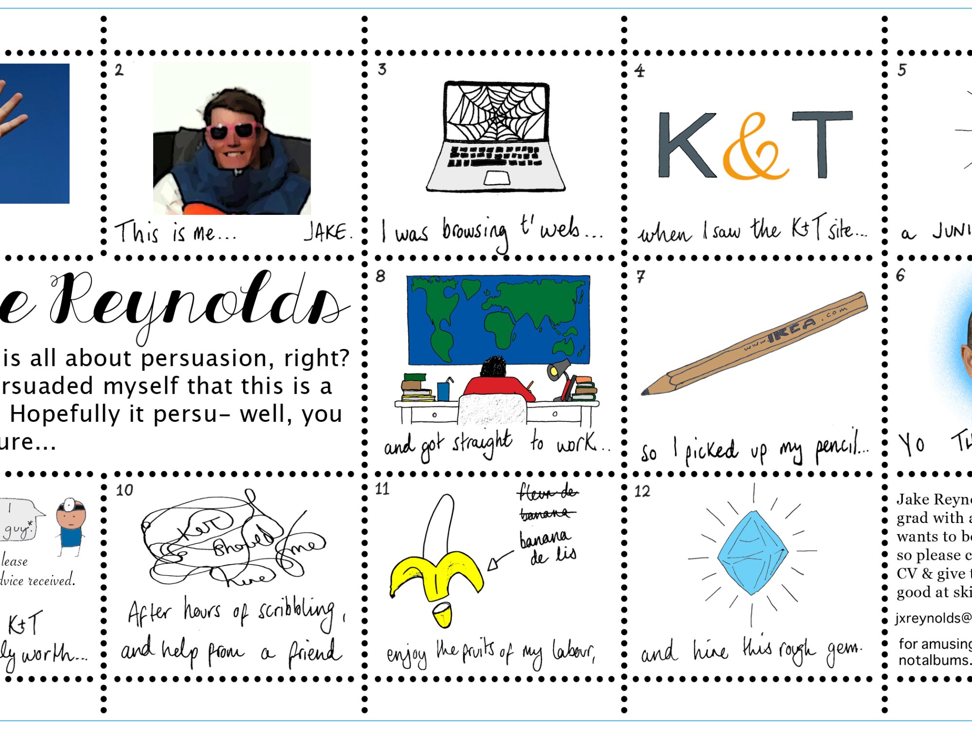 Looking back, some of the efforts are admirable and fun, but lacking in substance. In attempting originality and differentiating from the crowd (when I really had no insight on what the crowd was doing), I was forgetting that an employer will want someone to advance their business, and handing over prime opportunities in incredibly competitive industries to under-qualified dreamers just doesn’t happen.