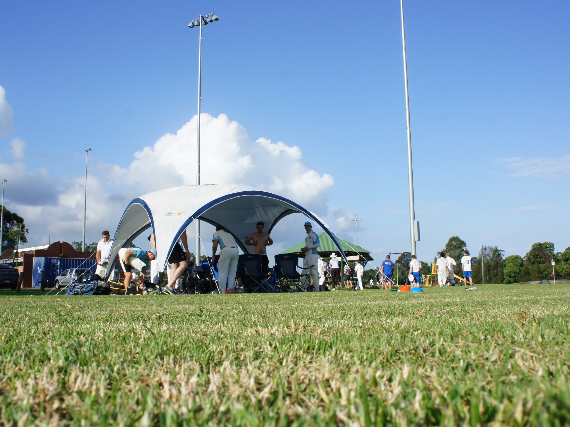 To avoid the Dapto wilt, a Woonona Dad and team mate, erected a Coleman® brand Event 14 sun shelter.